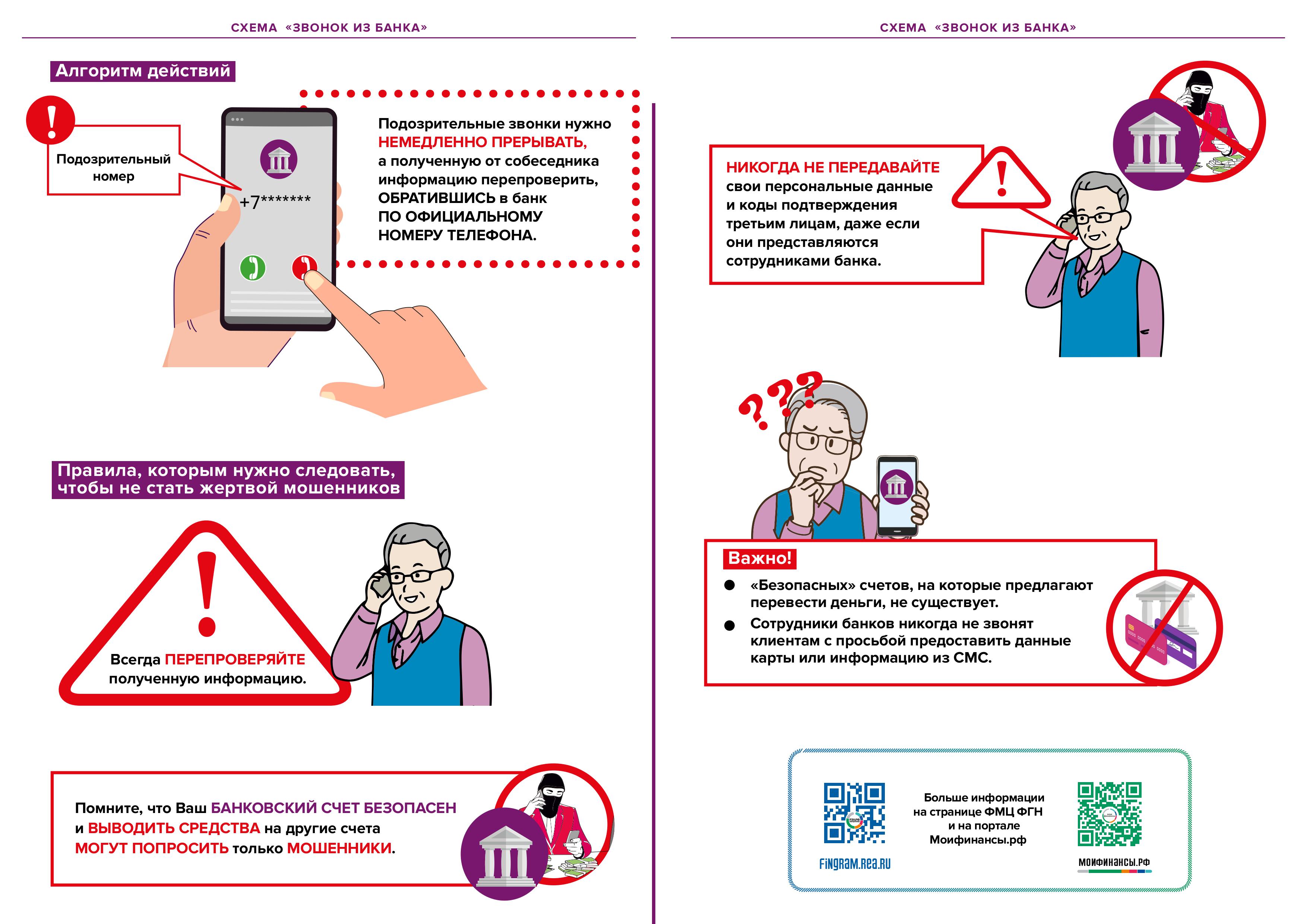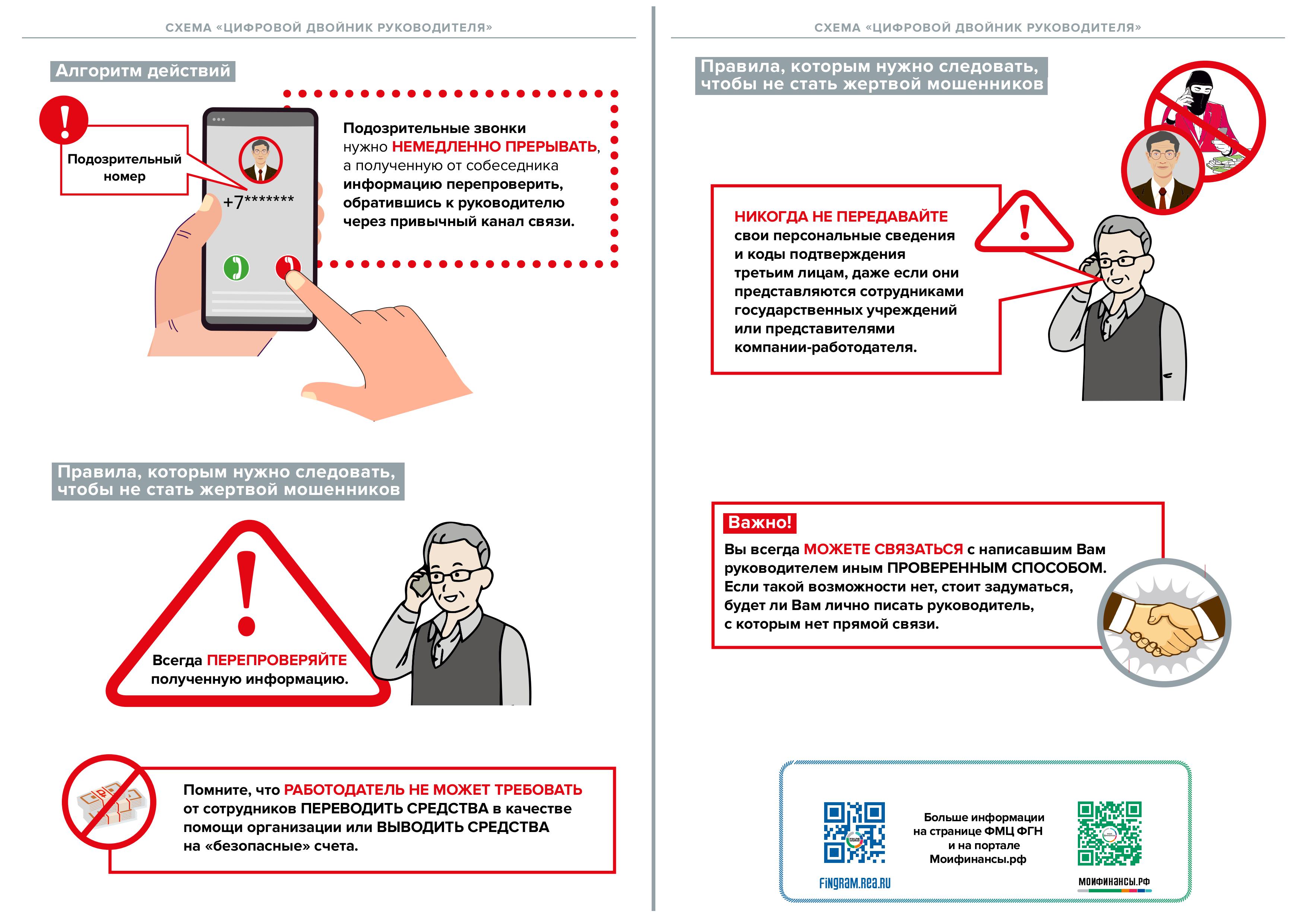 В рамках масштабной деятельности по повышению уровня финансовой грамотности граждан Российской Федерации Федеральный методический центр финансовой грамотности Российского экономического университета имени Г.В. Плеханова (РЭУ им. Г.В. Плеханова) по заказу Министерства финансов РФ разработал серию карточек, информирующих об основных мошеннических схемах: